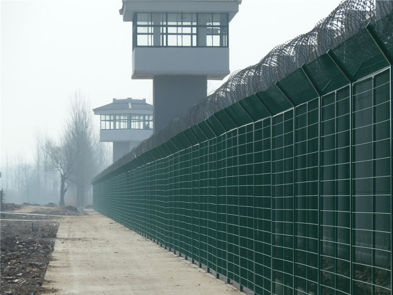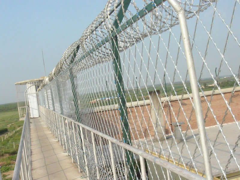 監獄隔離網,監獄高安全防護網,采用大直徑高強度合金鋼絲制作,具有防攀爬、抗沖擊、抗剪切特性和良好的震慎作用,專用于監獄看守所、警戒線軍事基地等高圍欄安全領域。